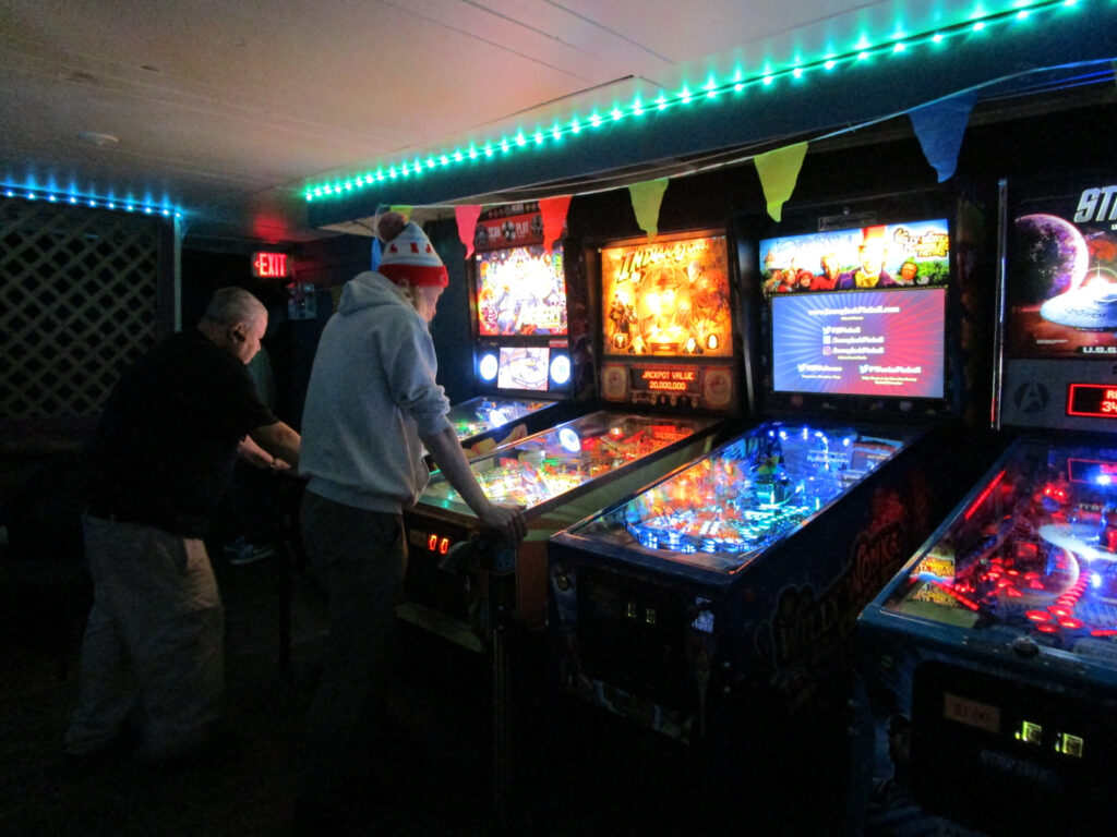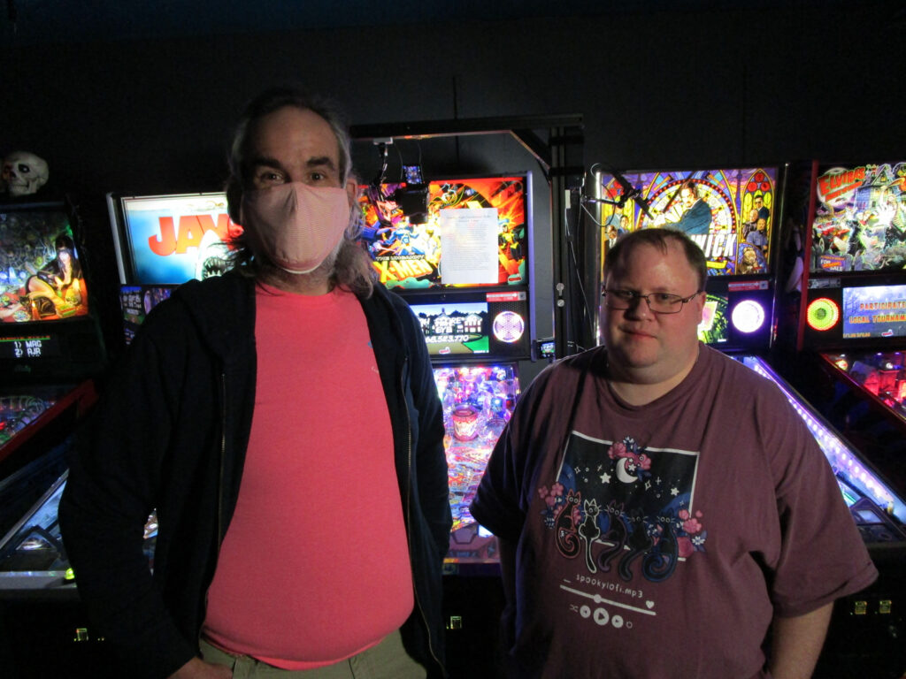 New player Greg and old hand Brian, hard at work in the pinball mines.