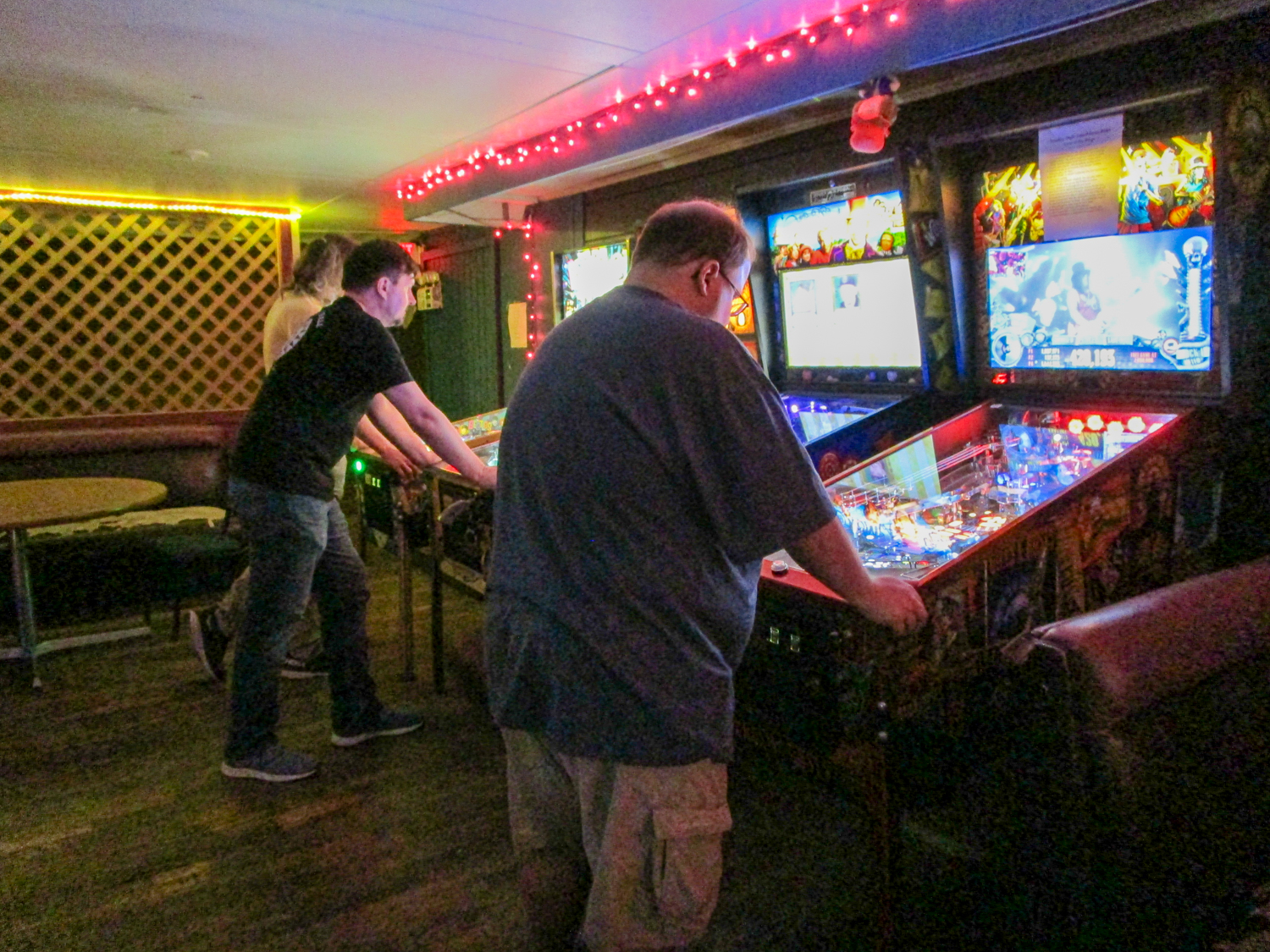 Chaos agents Linda and Ethan ended up in a group together along with Devon and, as Joseph put it, they were “rather merry.” At one point I was playing near their group when I observed Linda pretending she was going to bump poor Devon, who was obliviously concentrating on his actual pinball game. She and Ethan were asking me if that was against the rules and I said “yes, it’s called interference, and I could give you a yellow card,” but they pointed out that she had not actually touched Devon and he hadn’t noticed, so I had to admit that they had not actually interfered with him. Then for some reason, perhaps mocking how I had asked people to put comma separators into their scores to help Joseph make fewer data entry mistakes, Ethan started asking about putting commas in his scores. “What if I put a comma here?” he said, and put one on the end of the score. I pointed out that this would not actually change his score since it would still have the same number of digits in it. Anyway, that’s the kind of tomfoolery that was going on in that group.