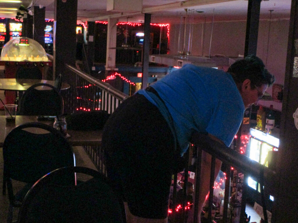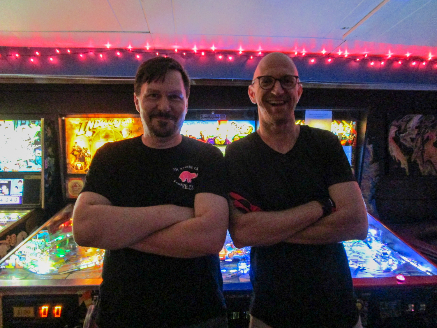 The big news of league night was that after having spent until 4 am the previous night shuffling things around on a spreadsheet to get the banks arranged for the new theme, “The Constellations,” I walked in and was told that there was no longer a Lord of the Rings, which had chosen as the Smackdown game. Further investigation revealed that Iron Maiden had also been removed. This was apparently done to allow for the placement of a photo booth. I told everyone we needed a moment of silence for LotR: it was one of the original four games the league started with in 2013. Two of those (our original Medieval Madness and Johnny Mnemonic) are already gone, and so the only remaining one is Indiana Jones. I hastily changed the Smackdown to Willy Wonka, and Joseph almost immediately got a ball stuck on it and Derik was eating dinner so we didn’t want to make him unstick it right away, so we then hastily changed again to Guns N Roses. I also then realized I had forgotten to make Smackdown medals. I admit I got pretty stressed, feeling like the league was starting off as a bit of a mess, especially given that we had a new player. Someone remarked that we always have stuff go wrong and I said, “Yes, but he doesn’t know this is supposed to be a shitshow yet.”