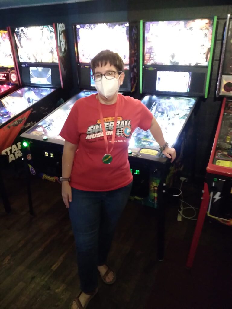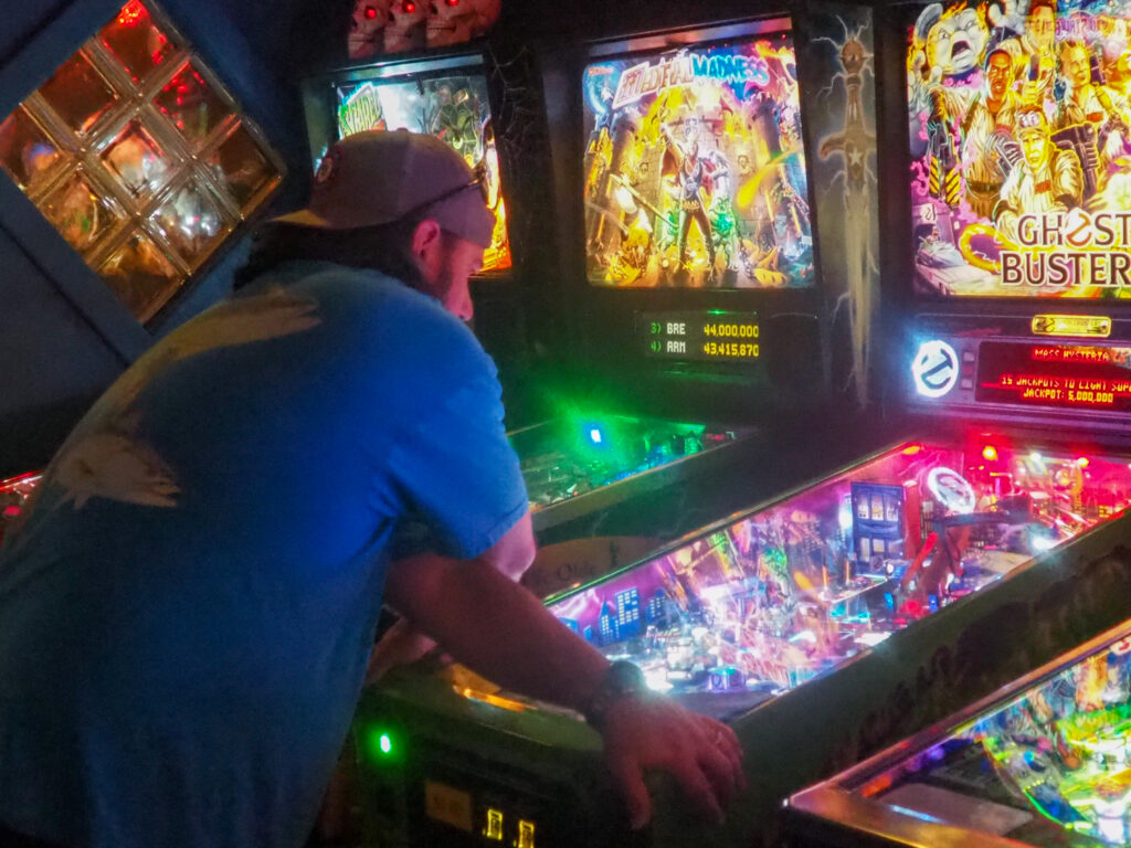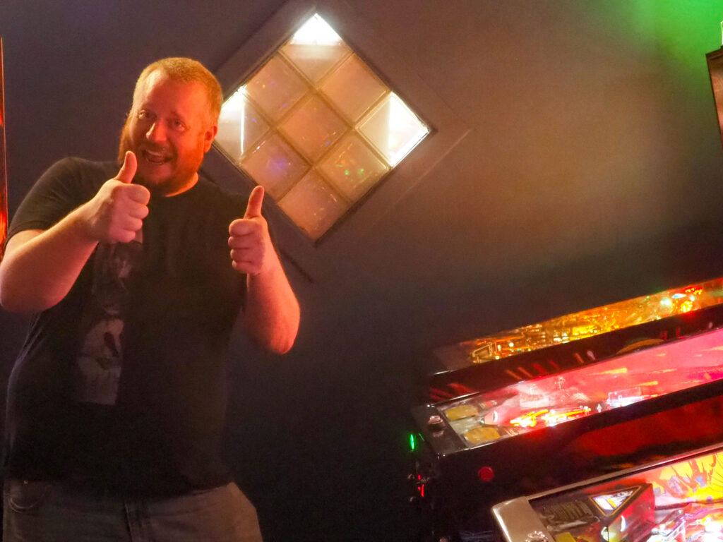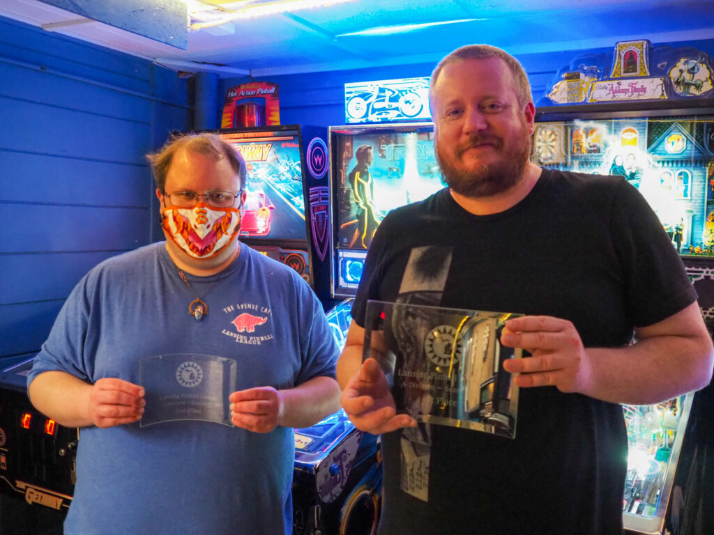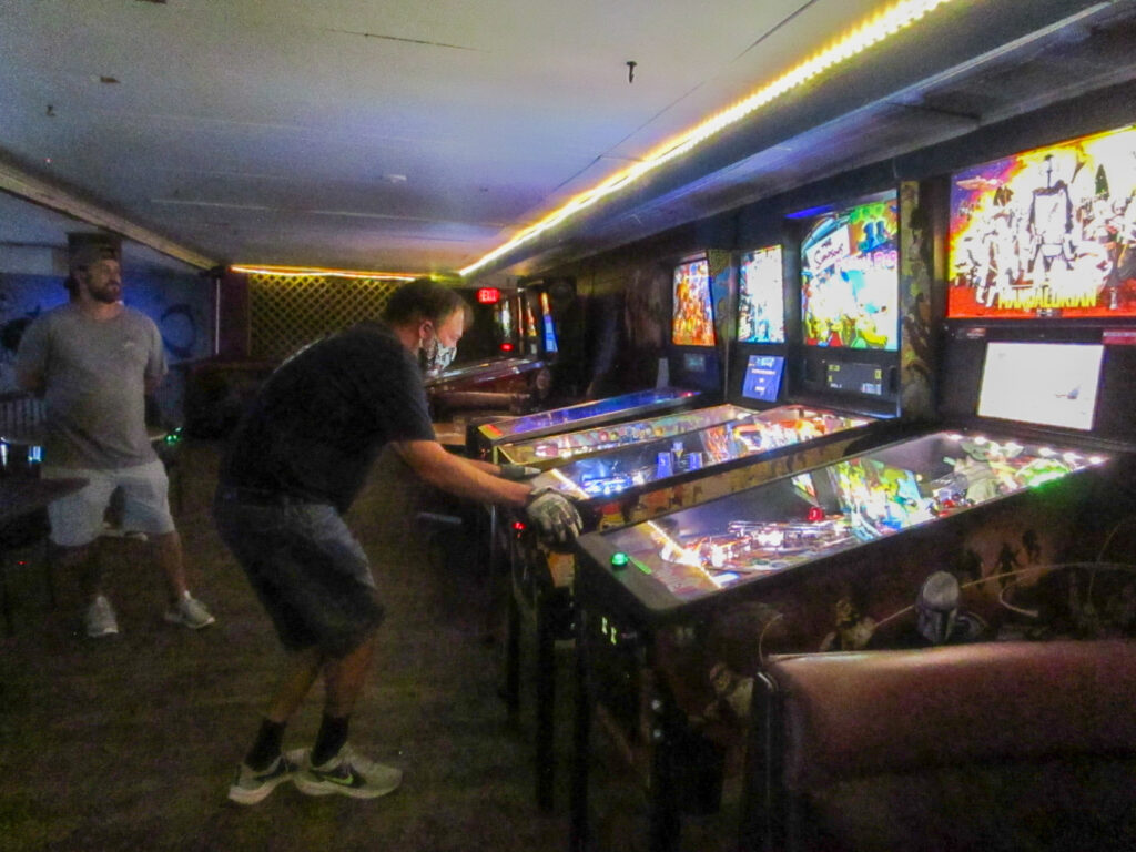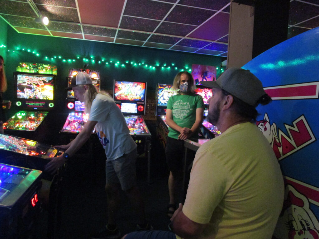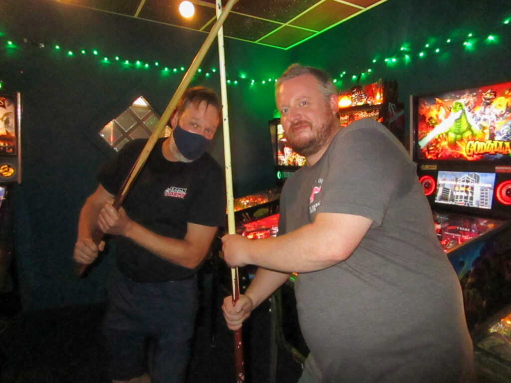 The team that did end up dominating my-and-Heather’s night would be the dream team of Josh and Jason, whom we ended up playing three times. They knocked me and Heather into the Second Chance bracket, but we came right back to give them their first loss. And that was on their picks of Willy Wonka and The Mandalorian, games I didn’t know you could play split-flipper worth anything. And then, just as we were feeling good about our chances, Josh and Jason knocked us dead on Munsters and Getaway, the two games we thought our best bets. But this let me extend the tradition of trying my hardest to look like a good sport after losing in finals, so that’s nice.