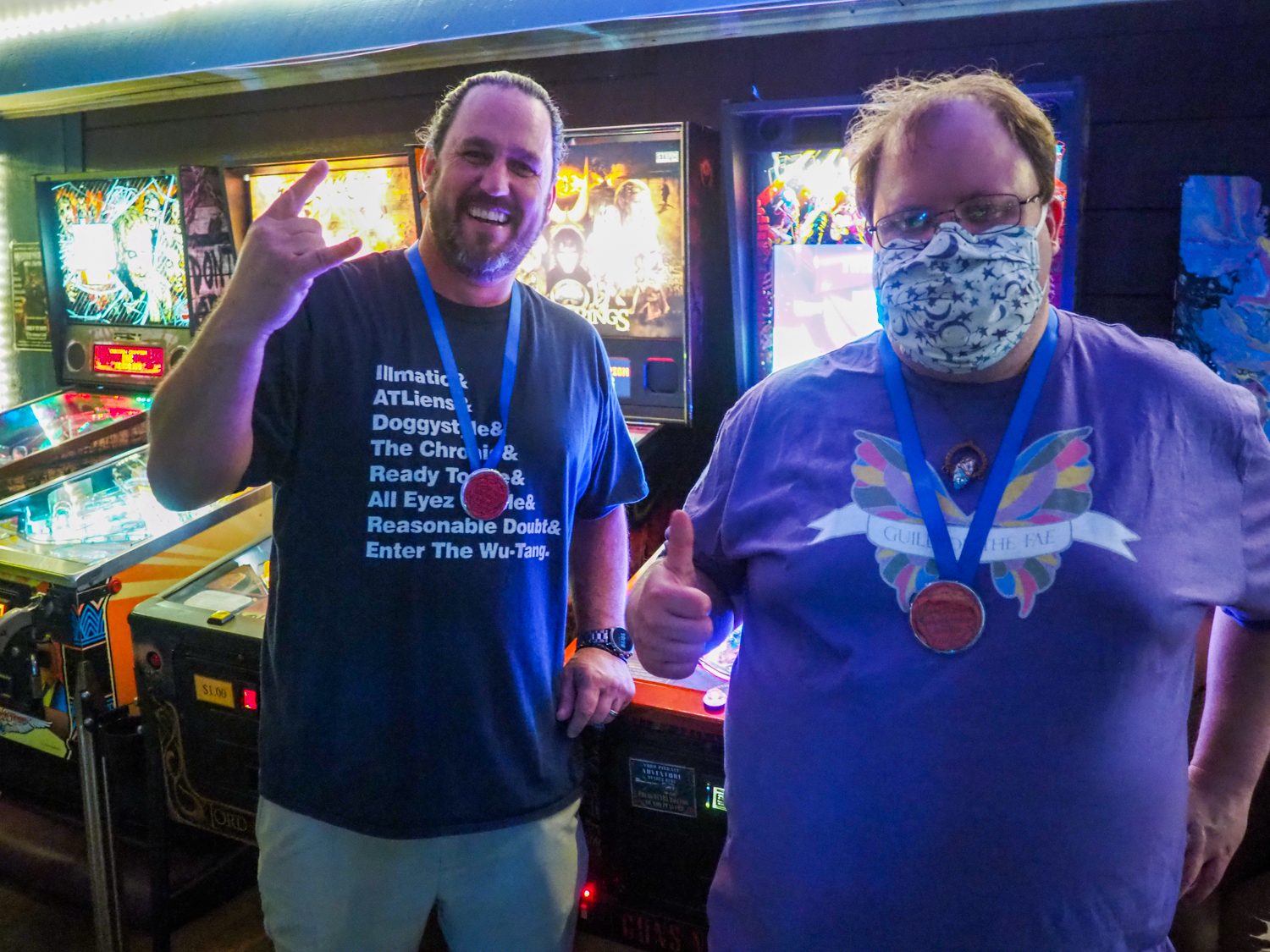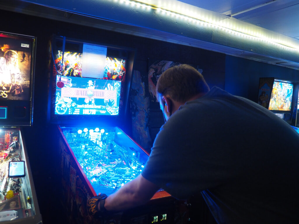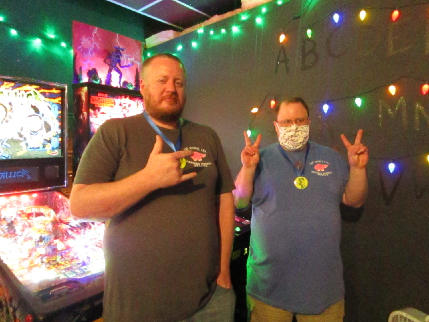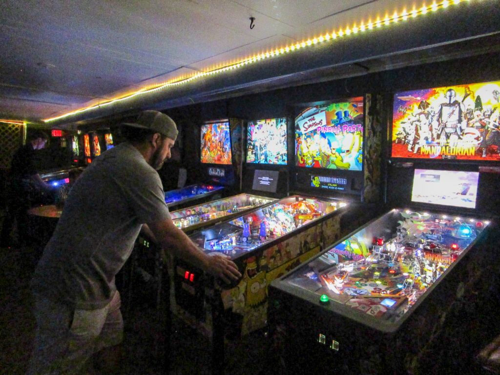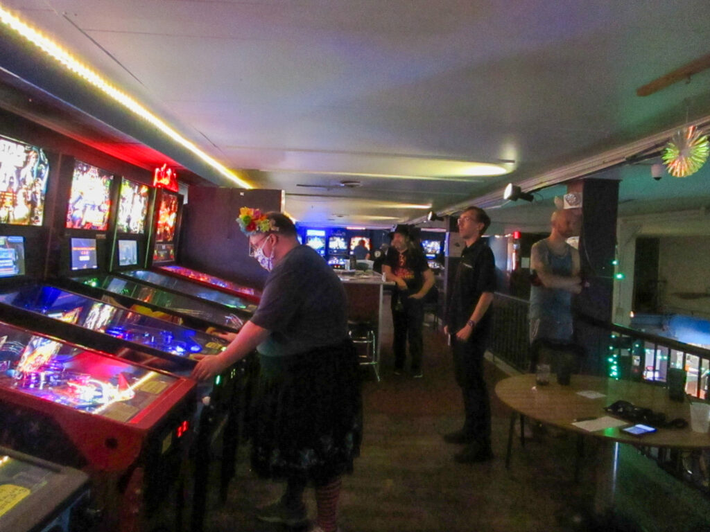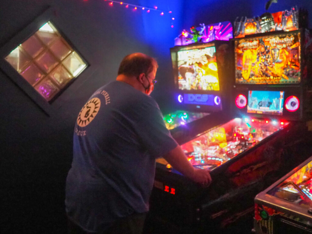The team that did end up dominating my-and-Heather’s night would be the dream team of Josh and Jason, whom we ended up playing three times. They knocked me and Heather into the Second Chance bracket, but we came right back to give them their first loss. And that was on their picks of Willy Wonka and The Mandalorian, games I didn’t know you could play split-flipper worth anything. And then, just as we were feeling good about our chances, Josh and Jason knocked us dead on Munsters and Getaway, the two games we thought our best bets. But this let me extend the tradition of trying my hardest to look like a good sport after losing in finals, so that’s nice.