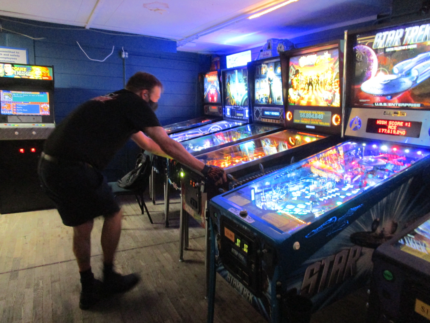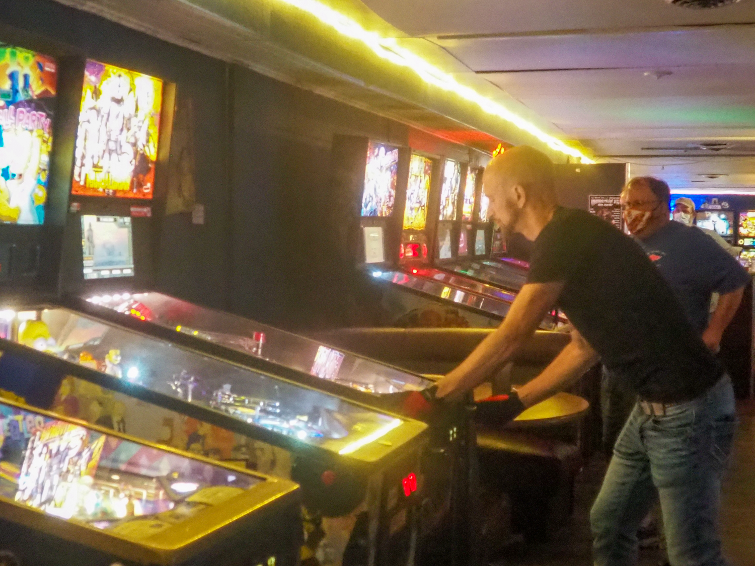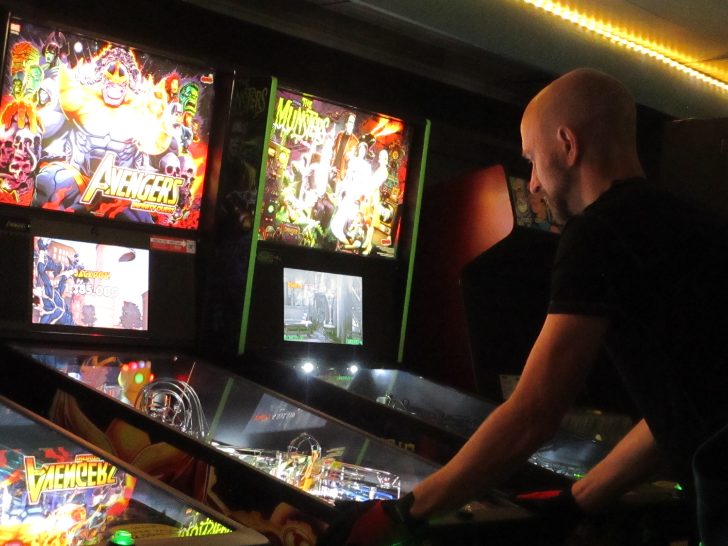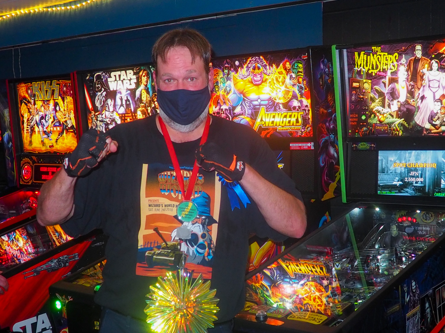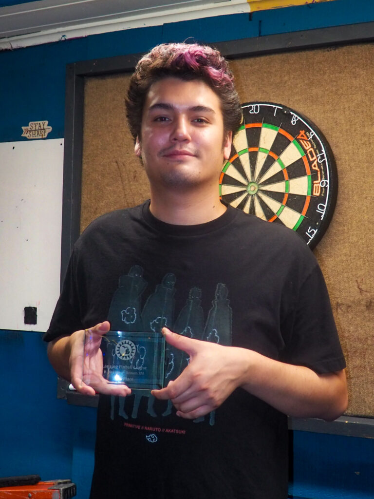 The team that did end up dominating my-and-Heather’s night would be the dream team of Josh and Jason, whom we ended up playing three times. They knocked me and Heather into the Second Chance bracket, but we came right back to give them their first loss. And that was on their picks of Willy Wonka and The Mandalorian, games I didn’t know you could play split-flipper worth anything. And then, just as we were feeling good about our chances, Josh and Jason knocked us dead on Munsters and Getaway, the two games we thought our best bets. But this let me extend the tradition of trying my hardest to look like a good sport after losing in finals, so that’s nice.