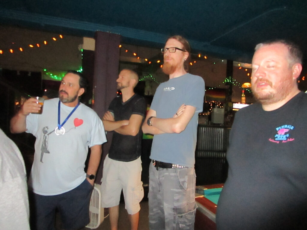 Making their debut as a team were newlyweds Bryan and Jenny. Bryan’s a fixture, and his father an always welcome sometimes-participant. But this was the first time to my recollection that Jenny’s come to a league event. Here’s hoping that more of the Johnson clan can join us.