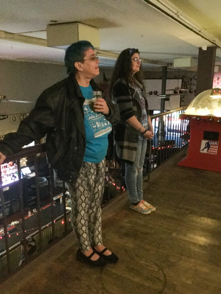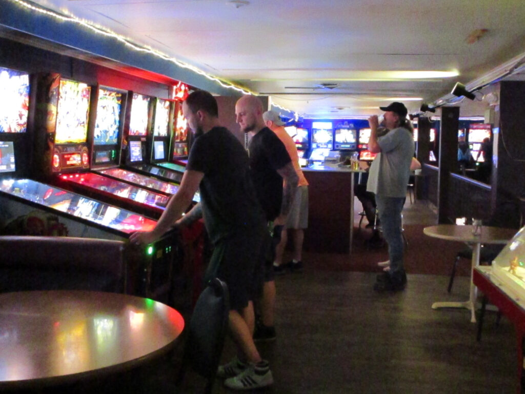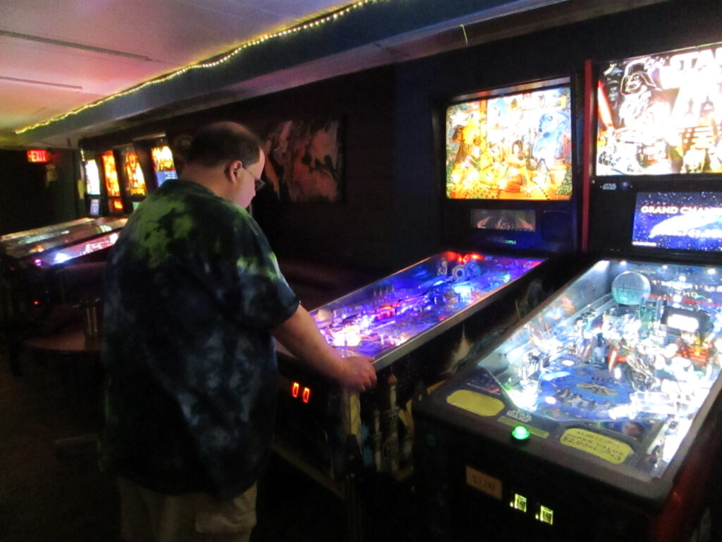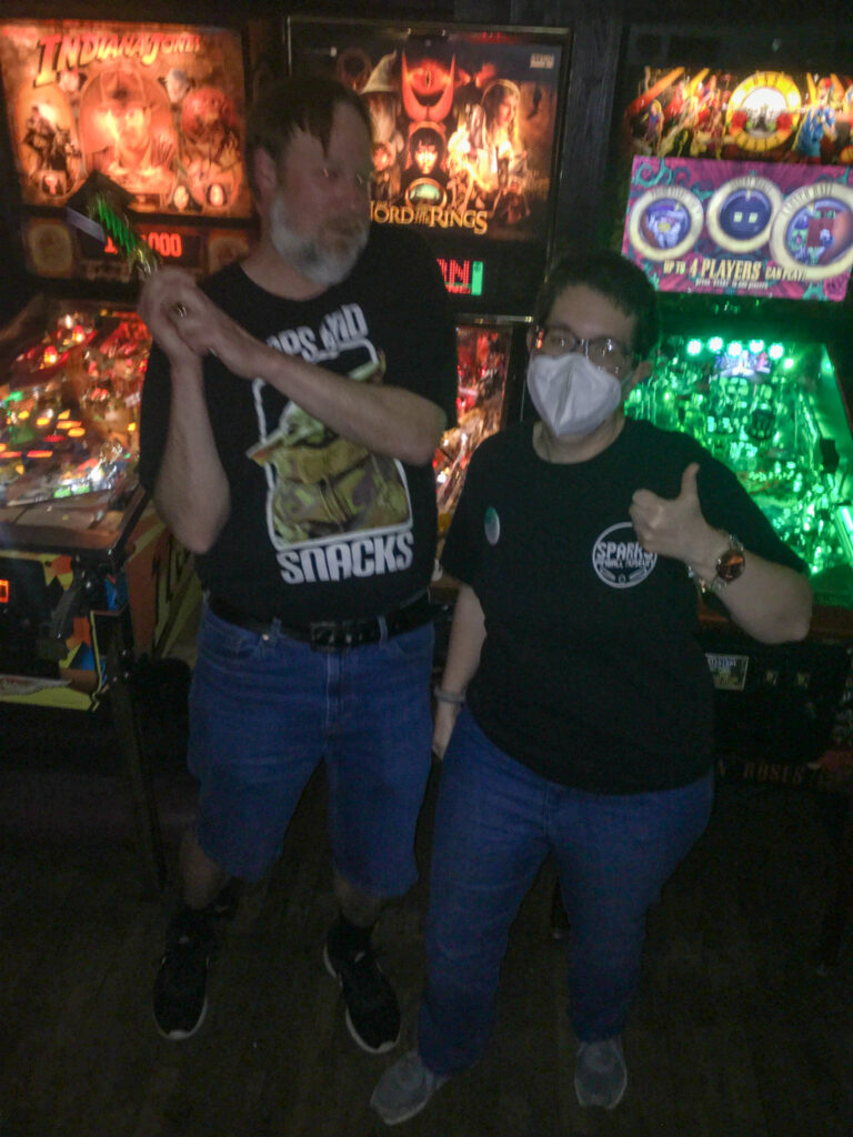 I was in a group with Cyndi, who is very new to pinball, and after making sure she was OK with receiving advice, I showed her how to make the Tower skill shot on Lord of the Rings and then immediately shoot the ring to start a mode. I was thrilled and proud when she proceeded to execute both elements perfectly on her first try, because at heart I’m a teacher even when I’m not at school. Cyndi, Linda, Josh, and I made for a fun and collegial group.
