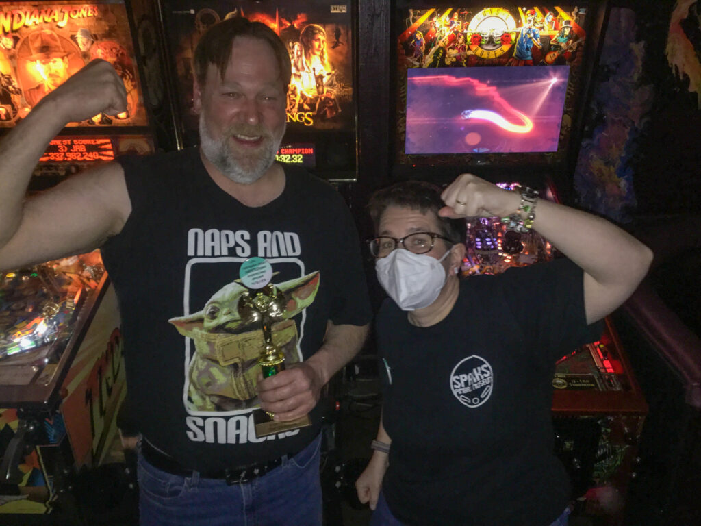 At one point during the night, I had someone come over to ask me what to do because they forgot to put a fourth player on Guns N’ Roses, then when they tried to punch one in at the last minute after player three finished ball one, it went to player one ball two, but it did now show a fourth player. When they described this I was pretty sure I knew what happened. I did not actually know this was possible, but I guessed that it would allow you to add a new player at any time rather than just during Ball One, and then would just give them three balls to play no matter what ball everyone else was on at the time. This was consistent with the strange way that extra balls work on Jersey Jack games (they add them to the end of the game rather than after the ball you earned them on). As I walked over I said “This is a weird effect of how how Jersey Jack games handle balls.” Ethan replied “I’m glad we’re discussing how to handle balls.” Anyway, it turned out I was right and it just added the player’s balls to the end of the game the same way it handles extra balls. Thanks for always confusing tournament play, Jersey Jack.