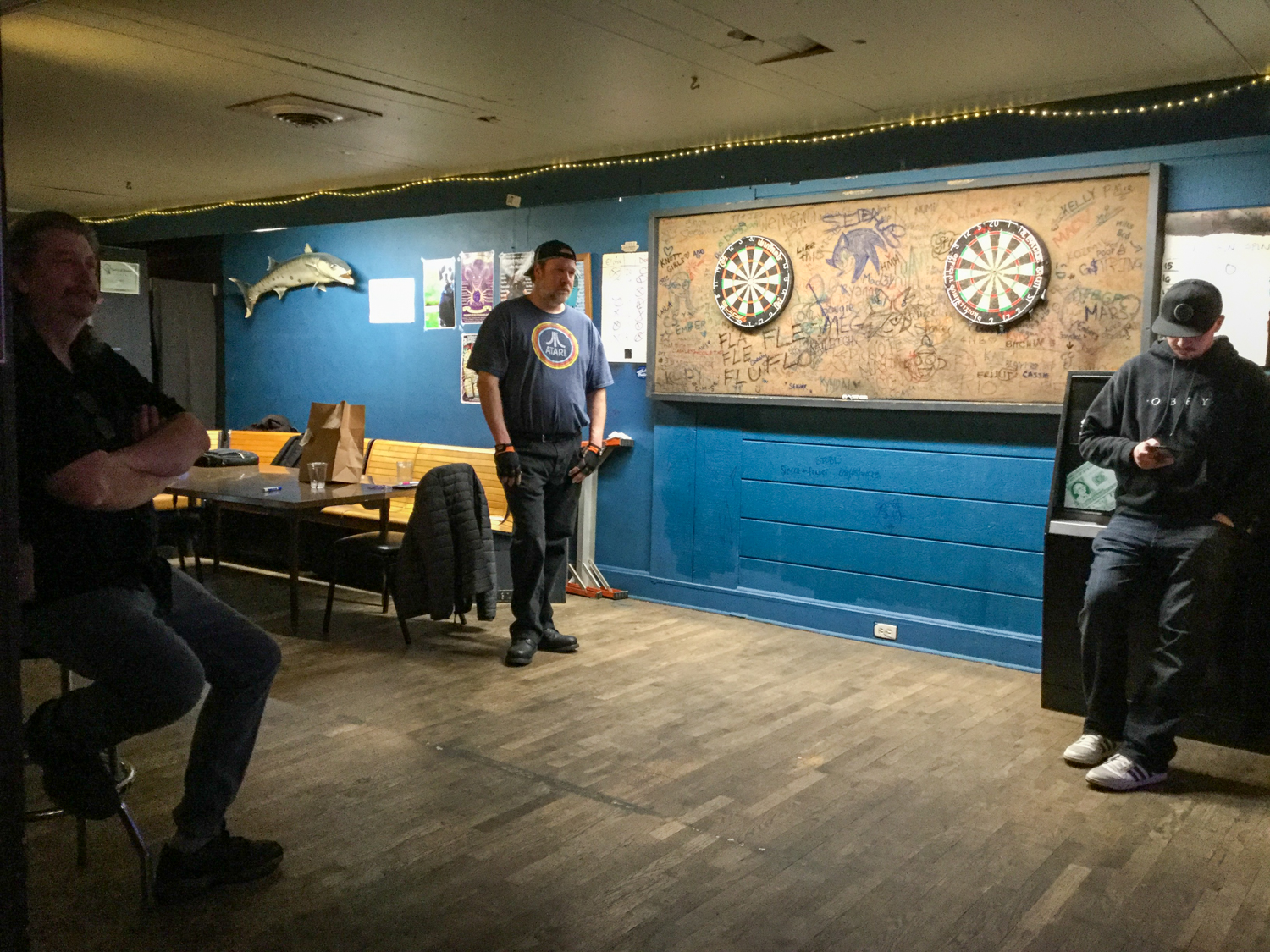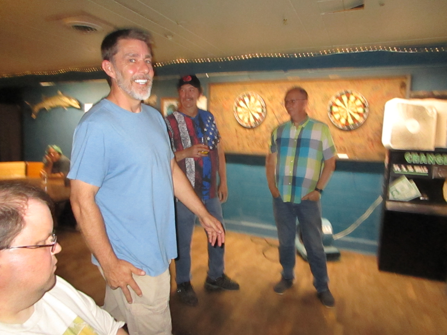 Our league night on July 11 was the final night of qualifying for Season 18. As we got ready to send people to their respective banks, Ted got confused because he remembered playing bank “A” last time and we gave him an A group again this time. He pointed this out as he thought it was a mistake. Joseph started to explain that he switches which bank is “A” so people keep the same letter, but Adam cut in first to give Ted a hard time: “How many league nights have you been to now, and you don’t know how this works?” or something along those lines.