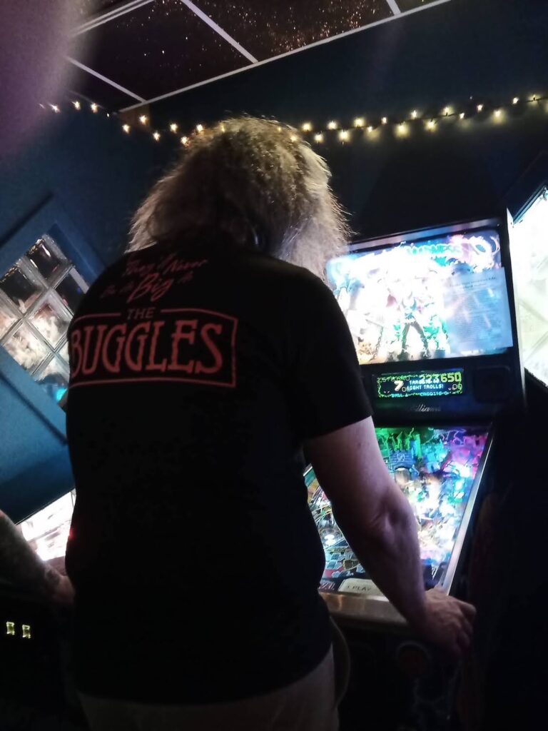 Danny C. was wearing a totally awesome shirt with famed pinball medic Dr. Dude on it. I was admiring it because I’m kind of a fan of that game, and Derik made sure to point out that it was an original Dr. Dude shirt from when the game was new.