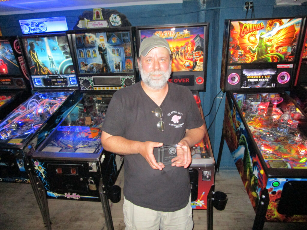 The Capital Crushers descended on The Avenue Cafe on March 28 to kick off the eighteenth – you read that right – season of the Lansing Pinball League. It was our best-attended night in a long time as 25 people played, necessitating the addition of a second bank. This was mainly due to a sudden influx of enthusiastic new players who brought great energy with them: Ethan, Cyndi, Jon, Adam, Ann-Marie, Grant, Randall, Ro, and Ted. We did our usual drawing from a hat but fortunately avoided having a group entirely made up of new players (barely, since Joseph ended up steering a group of three newcomers). We also had the reappearance of a couple of off-and-on regulars who weren’t able to make it last season, Jason “Mags,” Shylia, and Brian K.