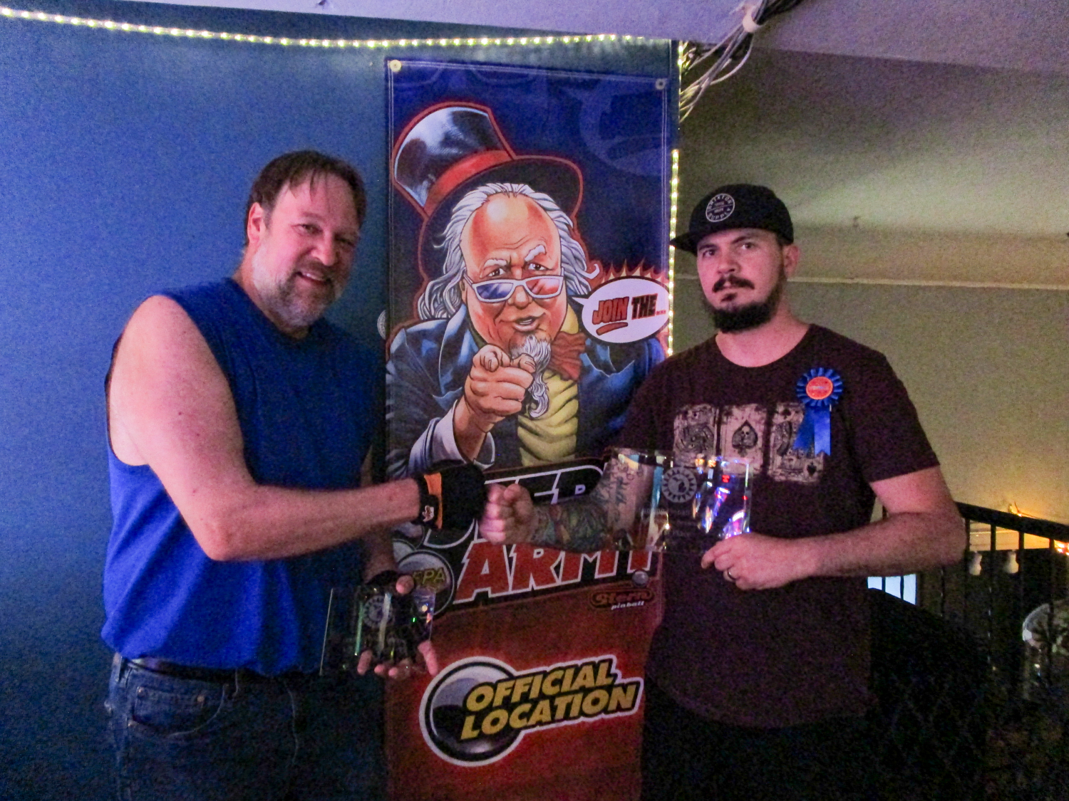 I had made buttons using the button press that I’m so proud of, and I stuck the champ’s button on Tim using the tape that Joseph had stuck it to the game backglass with, and declared that Tim was now the Sheriff. It was maybe ten minutes later that they suddenly ran back up to me and said “I just noticed, it says 4/11 on it!” I had forgotten to change the date on my template from the previous league night. And I had made such a cute cactus drawing on it too. I promised to remake it for next time which I still plan to make good on, right after I’m done writing this league report.