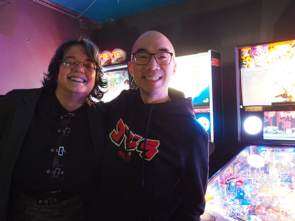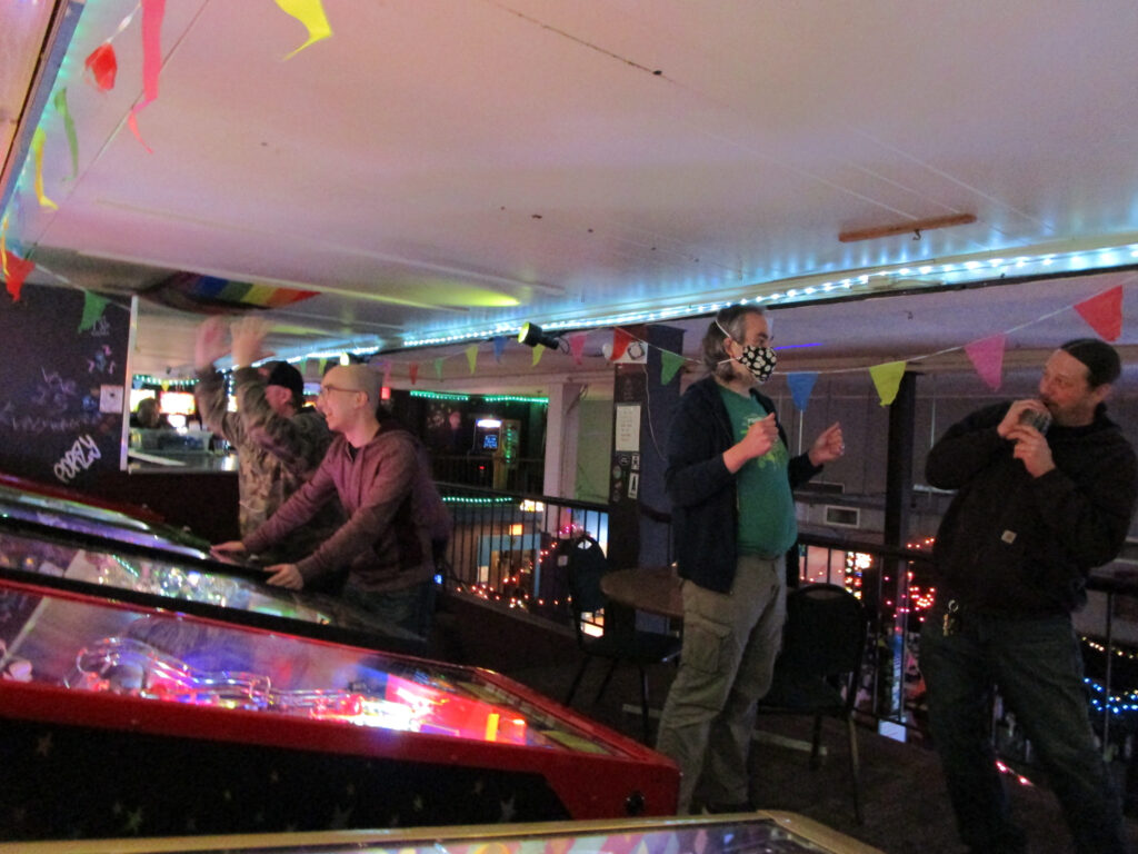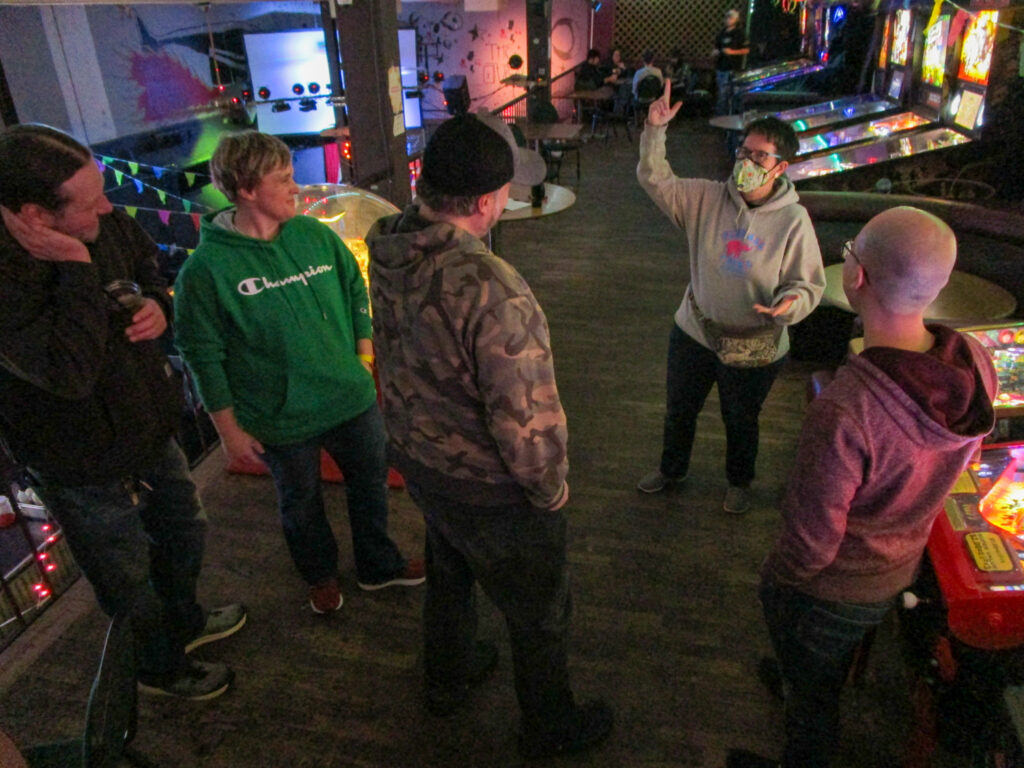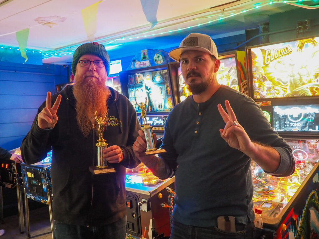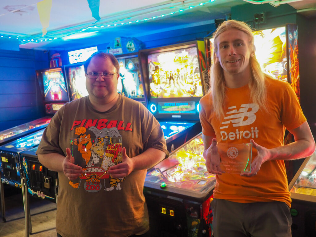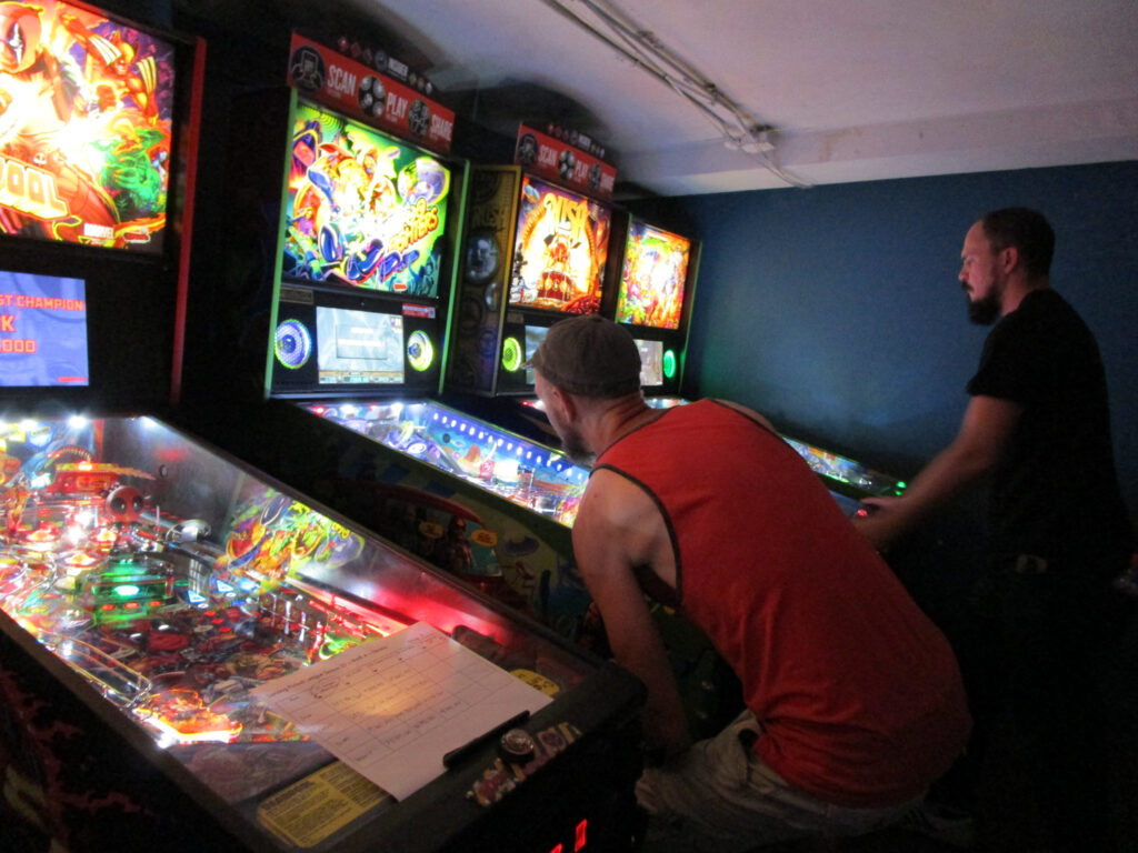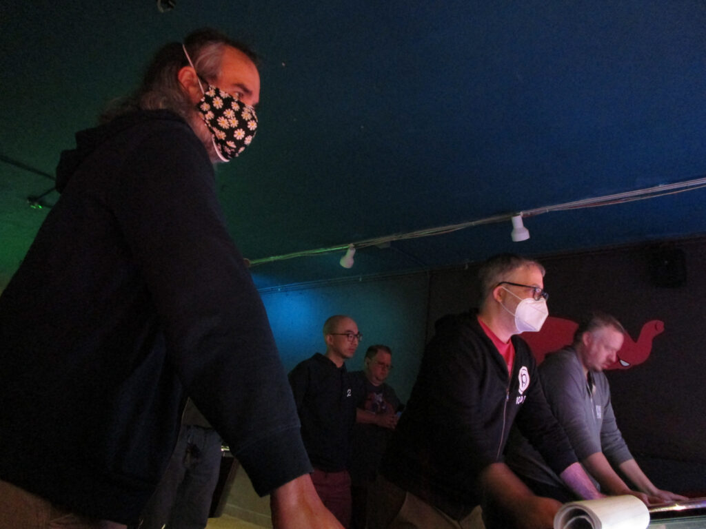 The biggest event of the night, though, was a guest appearance by past league member Allen, who was back in town (from his home state, Texas) for Pinball at the Zoo. Derik texted me ahead of the meeting to ask if the Smackdown game could be Deadpool in honor of Allen, and I reluctantly set aside the game the random number generator had come up with – The Beatles – to do that favor. Don’t worry, we’ll play The Beatles for our Smackdown tonight instead. Everyone who knew Allen when played in the league, while he was temporarily living in the area, was delighted to see him. He also got to meet the newer league members who arrived after his departure. It made for a jovial night despite the tension of the end of qualifying.