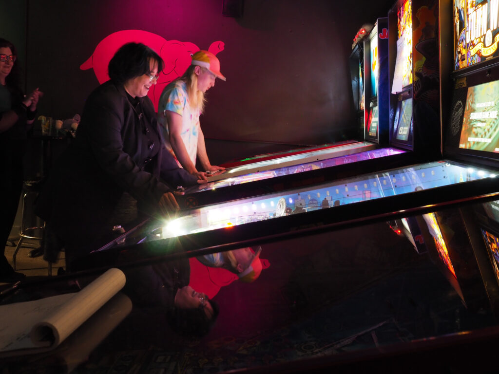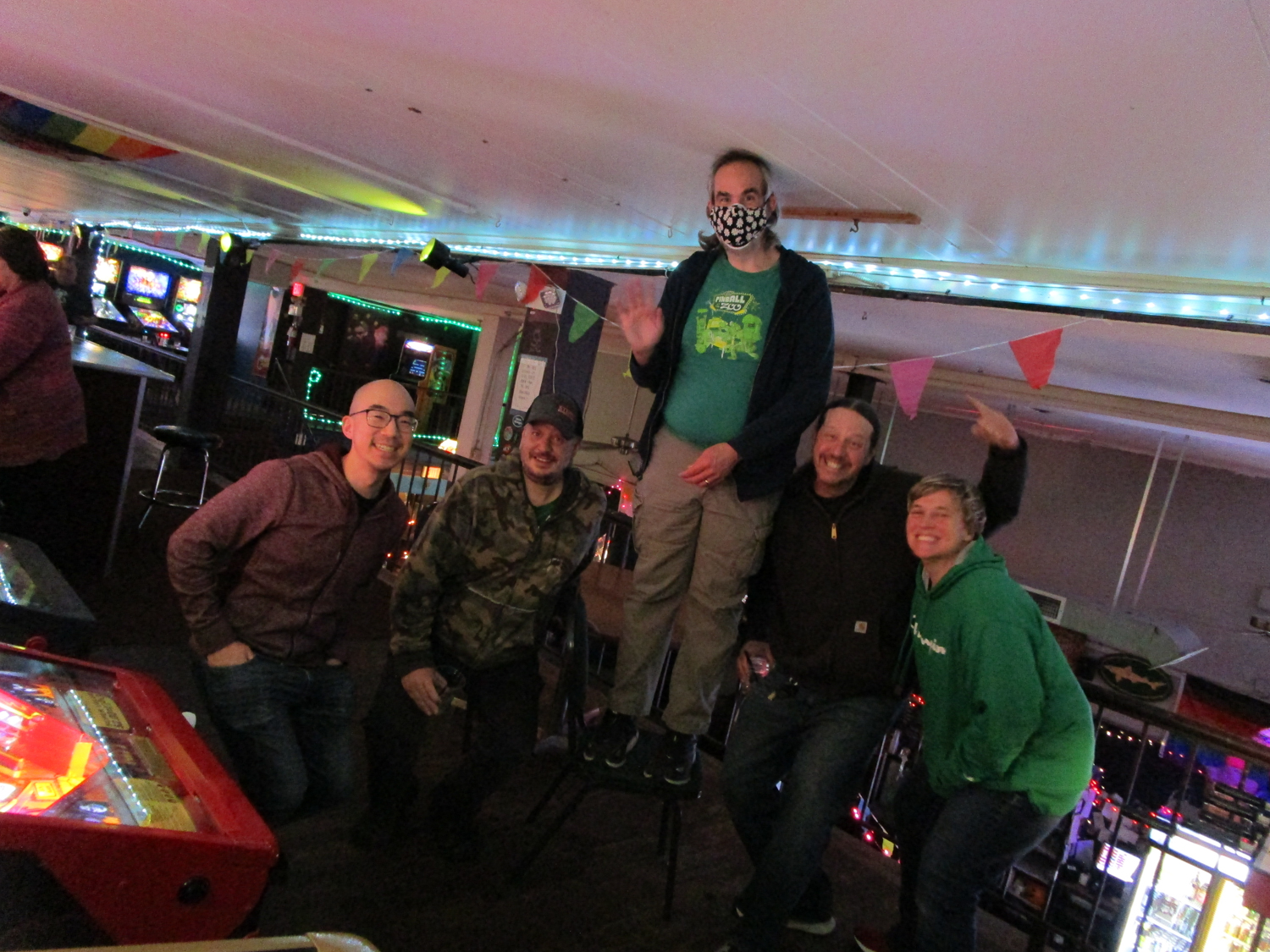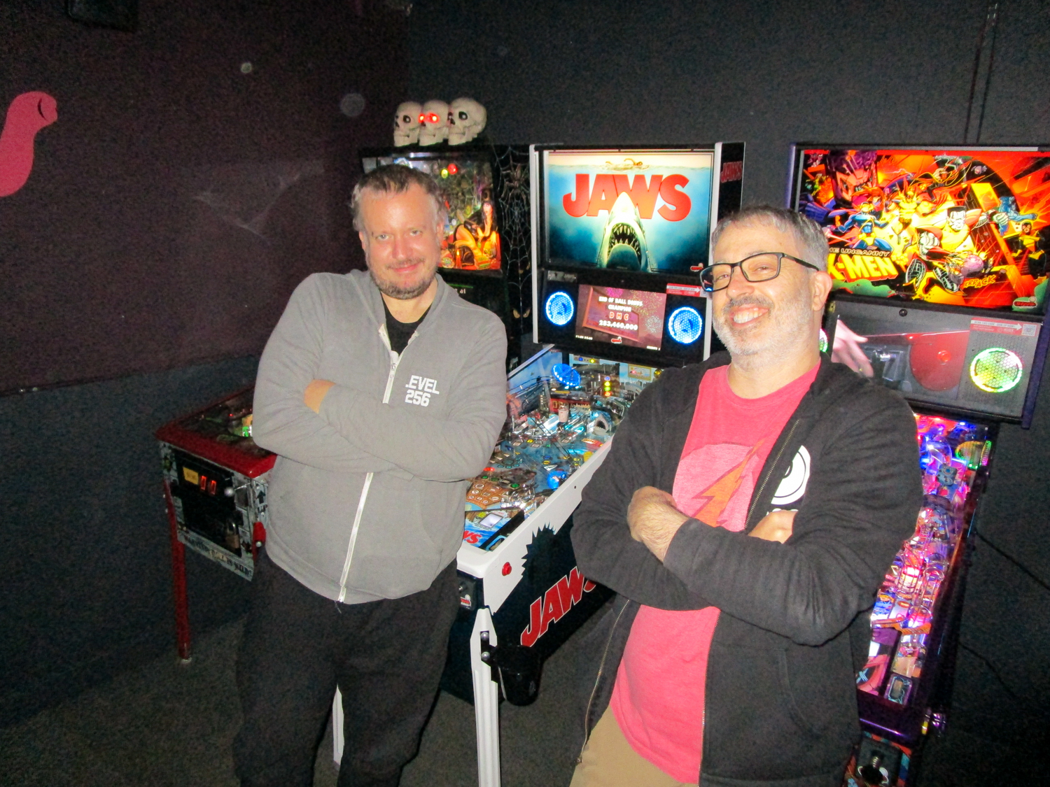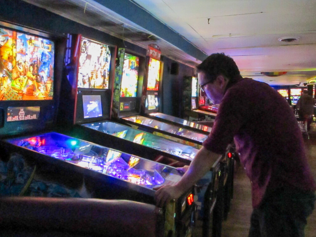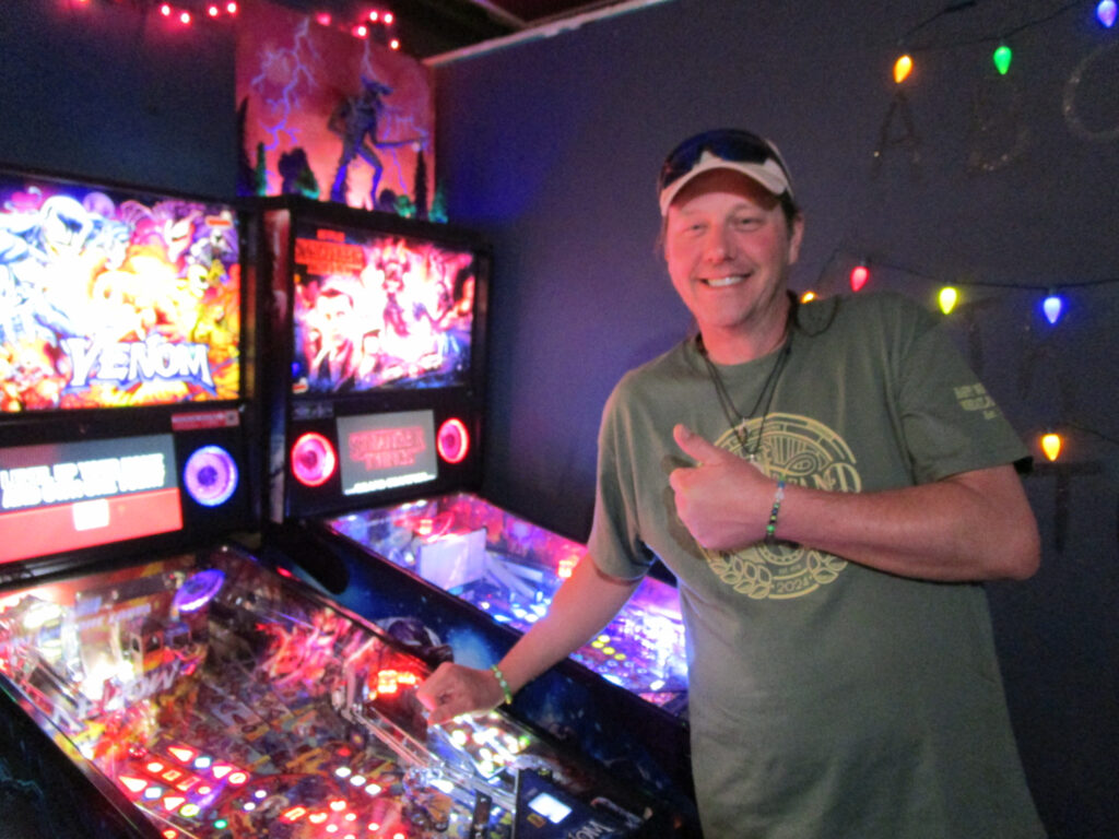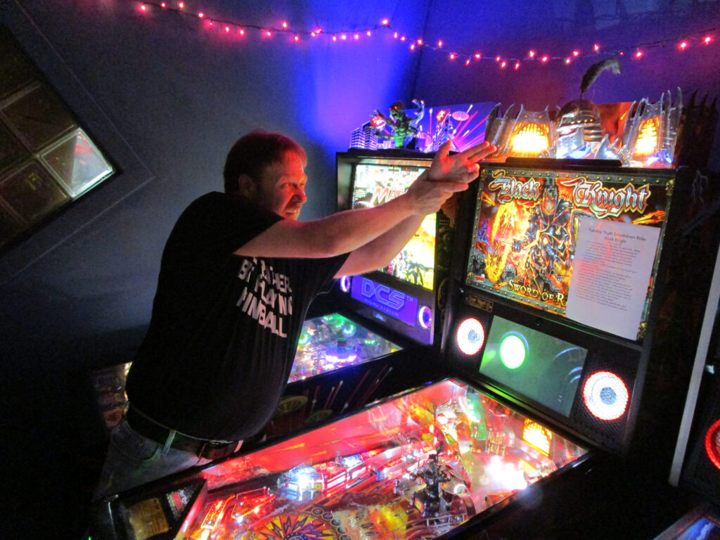 The biggest event of the night, though, was a guest appearance by past league member Allen, who was back in town (from his home state, Texas) for Pinball at the Zoo. Derik texted me ahead of the meeting to ask if the Smackdown game could be Deadpool in honor of Allen, and I reluctantly set aside the game the random number generator had come up with – The Beatles – to do that favor. Don’t worry, we’ll play The Beatles for our Smackdown tonight instead. Everyone who knew Allen when played in the league, while he was temporarily living in the area, was delighted to see him. He also got to meet the newer league members who arrived after his departure. It made for a jovial night despite the tension of the end of qualifying.