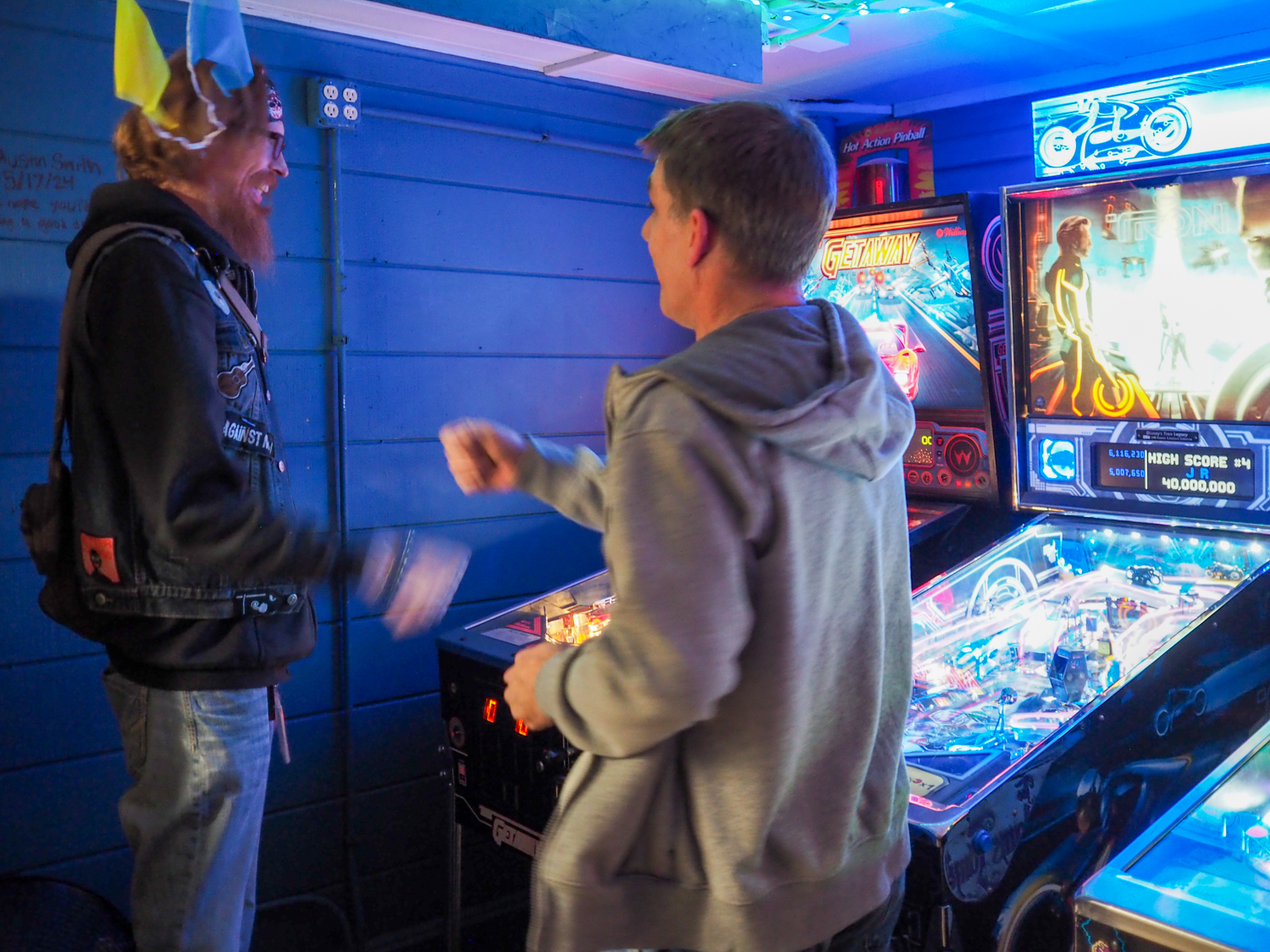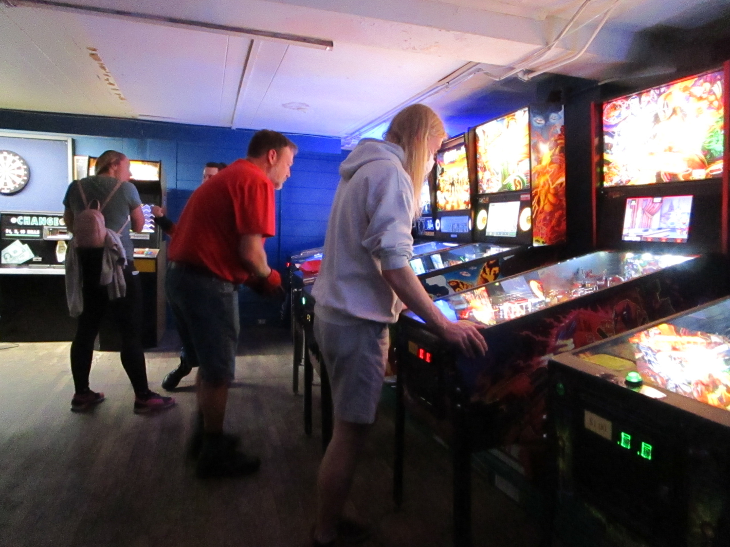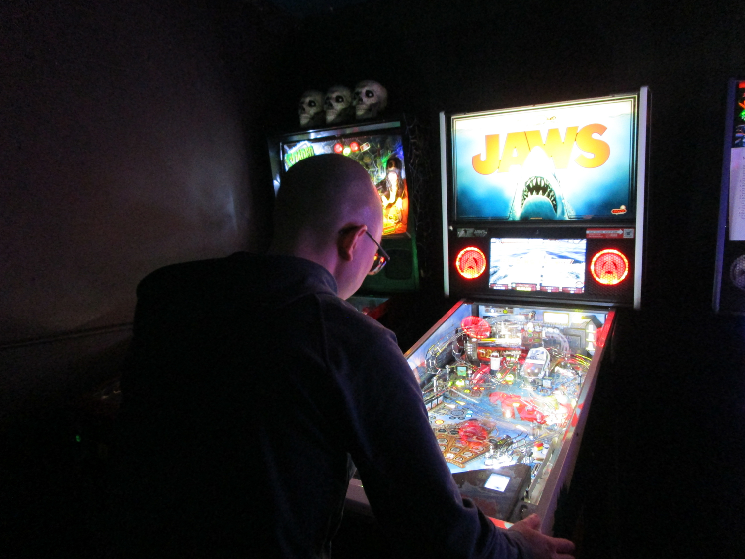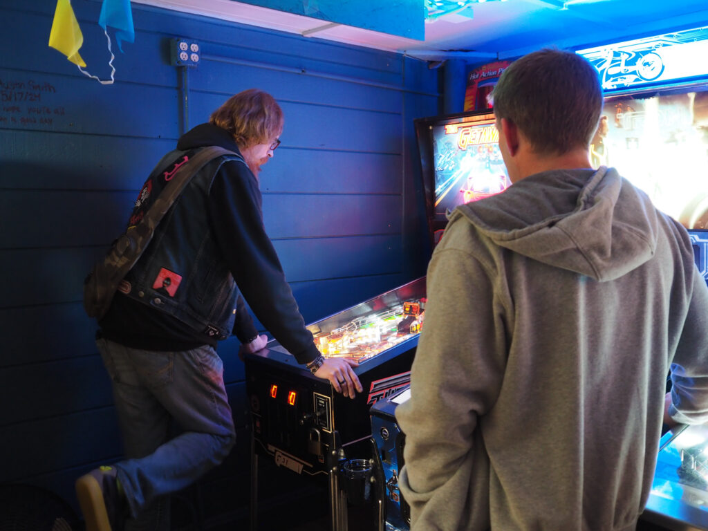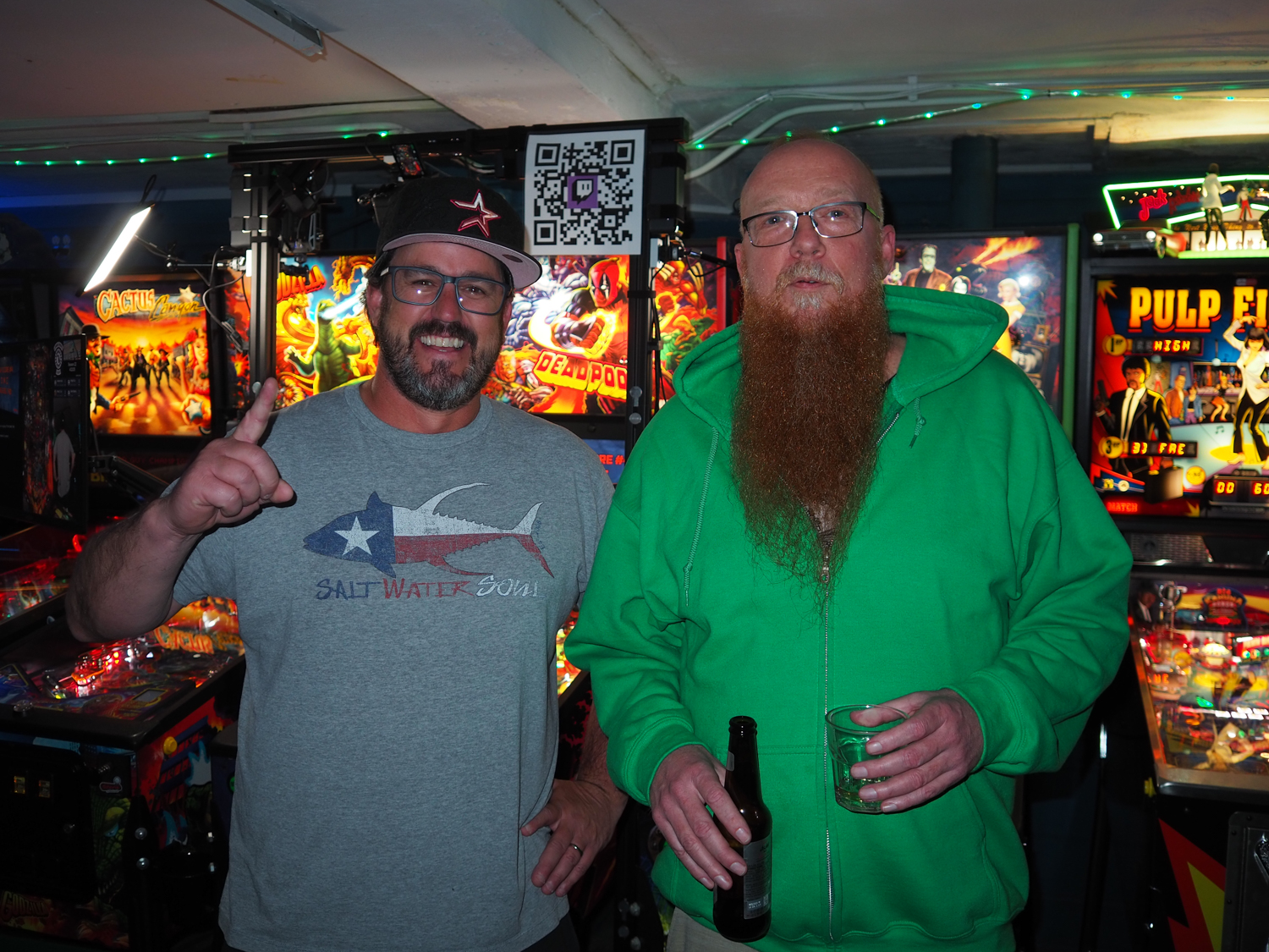 The biggest event of the night, though, was a guest appearance by past league member Allen, who was back in town (from his home state, Texas) for Pinball at the Zoo. Derik texted me ahead of the meeting to ask if the Smackdown game could be Deadpool in honor of Allen, and I reluctantly set aside the game the random number generator had come up with – The Beatles – to do that favor. Don’t worry, we’ll play The Beatles for our Smackdown tonight instead. Everyone who knew Allen when played in the league, while he was temporarily living in the area, was delighted to see him. He also got to meet the newer league members who arrived after his departure. It made for a jovial night despite the tension of the end of qualifying.