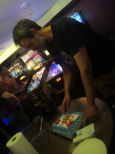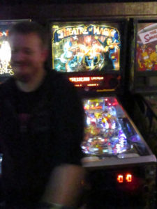 As usual, the league took a break until January, but in the meantime I hosted the third annual Silver Balls in the City charity tournament on December 27, benefiting the Capital Area Humane Society. Several people competed who had not attended an Avenue tournament before, including Derik from Pinball Pete’s, known to us in the past only as “the guy who fixes the pinball machines at the Avenue.” I knew him more by reputation than anything else. I had seen him once or twice and spoken to him in passing, but he had not played with the league so I hadn’t previously known what a skilled pinball player he is. He brought an extra $100 donation from Pinball Pete’s with him. Meanwhile, Speedy from Pinball Pete’s in Ann Arbor also attended. I had just met him a few days before when I happened to be at AA Pete’s while an informal league meeting was going on there. He brought two 40 lb. bags of dog food as an in-kind donation for CAHS. Pete’s also had Speedy and Derik bring some Pinball Pete’s T-shirts to give away as door prizes. This was all a big and very welcome surprise.